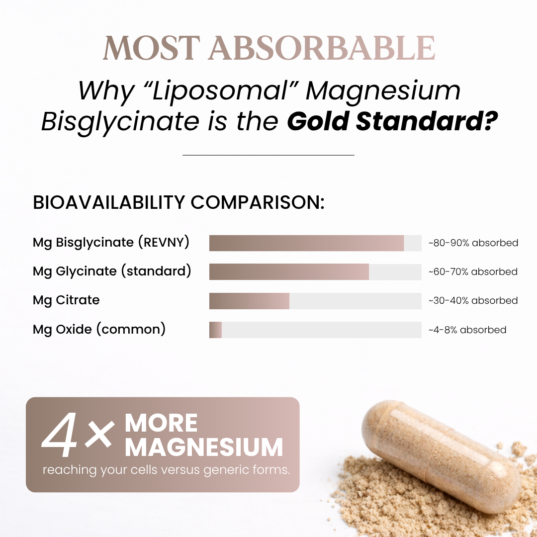 Liposomal Magnesium Glycinate calms nerves and helps you fall asleep 30% faster in 2 weeks.
